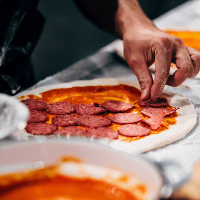 Pizza from scratch with Pepperoni and Olives