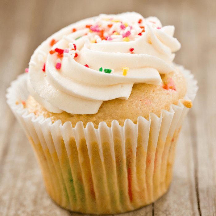 Vanilla Cupcakes with Sprinkles and Buttercream