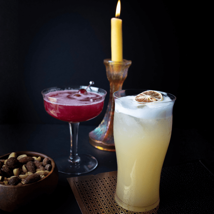 Get ready for a journey into prohibition-era cocktails. Our “Bee’s Knees Fizz” is a delightful blend of the Bee’s Knees and Gin Fizz cocktails, creating a unique drink that would be the talk of the town. The “Mary Pickford” is a sweet concoction featuring maraschino cherries, showcasing how bartenders from that era masked the taste of bootleg spirits while paying homage to celebrities. Add your favorite spirit to round out the experience.